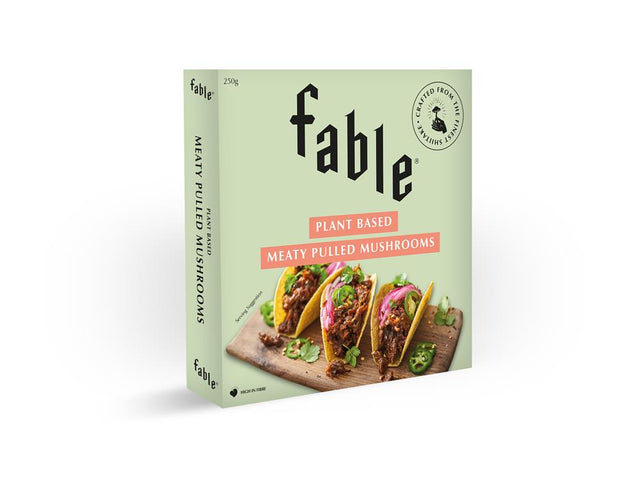 Fable is the mushroom-based meat alternative that has the delicious taste and succulent texture of a slow-cooked "beef". Made from shiitake mushrooms, Fable's Meaty Pulled Mushroooms is meaty and umami, leveraging the nutritious benefits and natural flavours of mushrooms that help make meat so appealing. Naturally high in fibre, vitamin D, a source of protein and low in sugar, Fable is proudly made from all natural, minimally processed whole food ingredients.