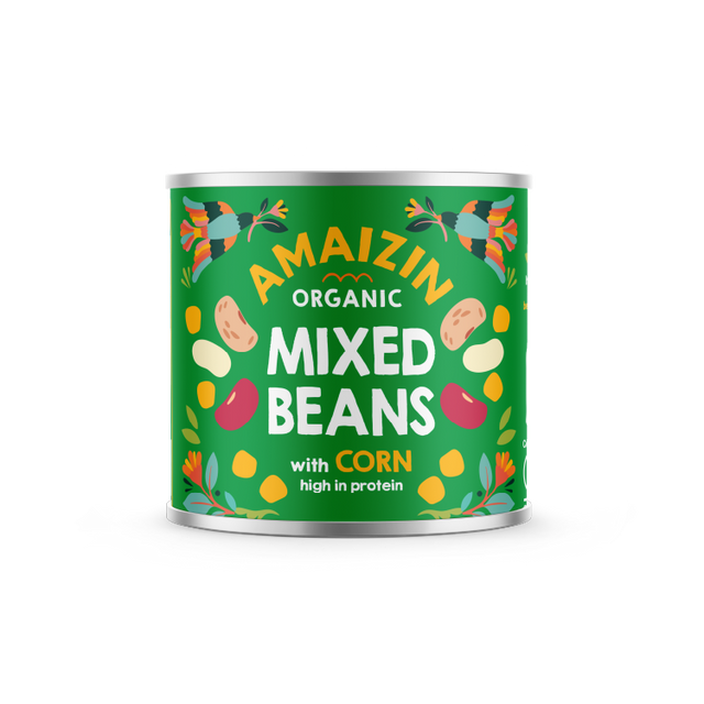 Discover the delicious blend of organic mixed beans with corn from Amaizin. This vegan-friendly product comes in a 200g can, perfect for adding to salads, soups, or as a tasty side dish. Enjoy the natural goodness of this nutritious mix.