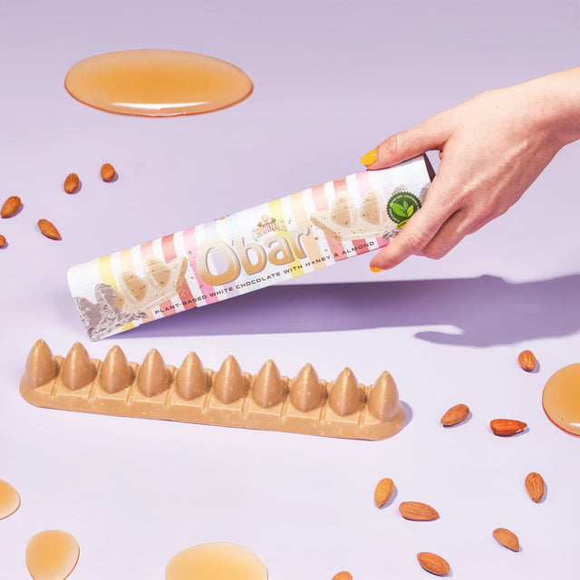 O'bar puts the 'O' in Originals. Bite into our vegan milk chocolates o's and be blown away with a crunchy almond and succulent h*ney filling (+ our secret ingredient).