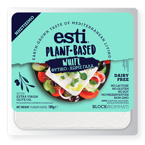 Enjoy esti plant-based white block every day, in every way. Inspired by the traditional Greek Feta cheese, its authentic mouthwatering taste is tempting over a vegan Greek salad, or with your favourite vegan dish. esti plant-based cheese alternatives genuinely compete in taste, texture, and satisfaction with the original cheese products.