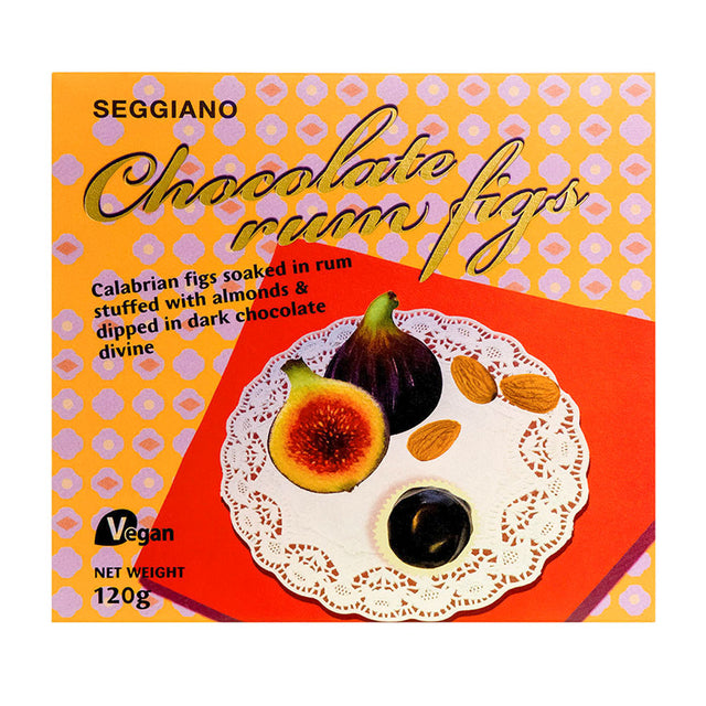 Seggiano Chocolate Rum Figs are whole Italian figs soaked in smooth, warming rum and enrobed in rich dark chocolate. Made using traditional artisan methods, each bite is soft, fruity, and deeply flavoursome — a true gourmet treat.