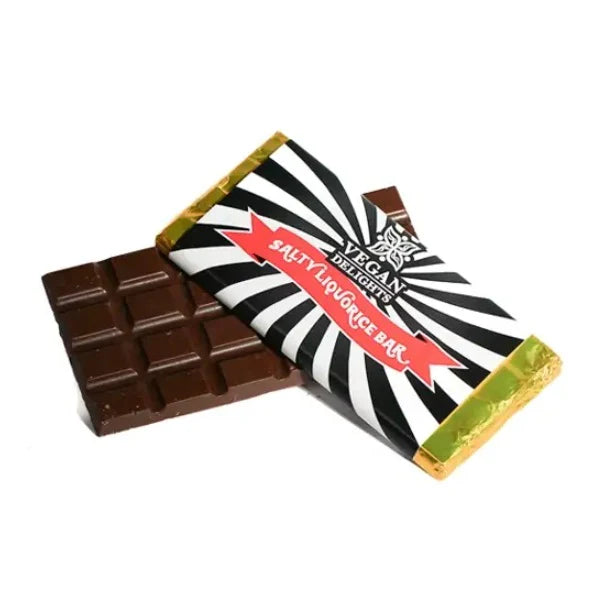 Vegan Delight's Salty Liquorice Bar is a creamy vegan m*lk chocolate style bar, made with salmiak (salty liquorice), a popular treat in Sweden (where this bar originates from) and other Northern European countries.This sweet yet slightly salty, savoury bar is filled with crunchy bits of salty liquorice for a uniquely moreish taste. Not only that, but it's gluten free and palm oil free as well!Enjoy this delicious bar on its own, perhaps as a little afternoon pick-me-up with a coffee, or get creative and incorporate into your favourite vegan treats and desserts; why not chop up and add into a vegan ice cream sundae? It would make a great stocking-filler or gift for someone, or for yourself - its portable size makes it the perfect treat for lunchboxes, picnics, camping, hiking, and so on!